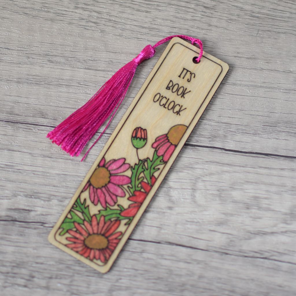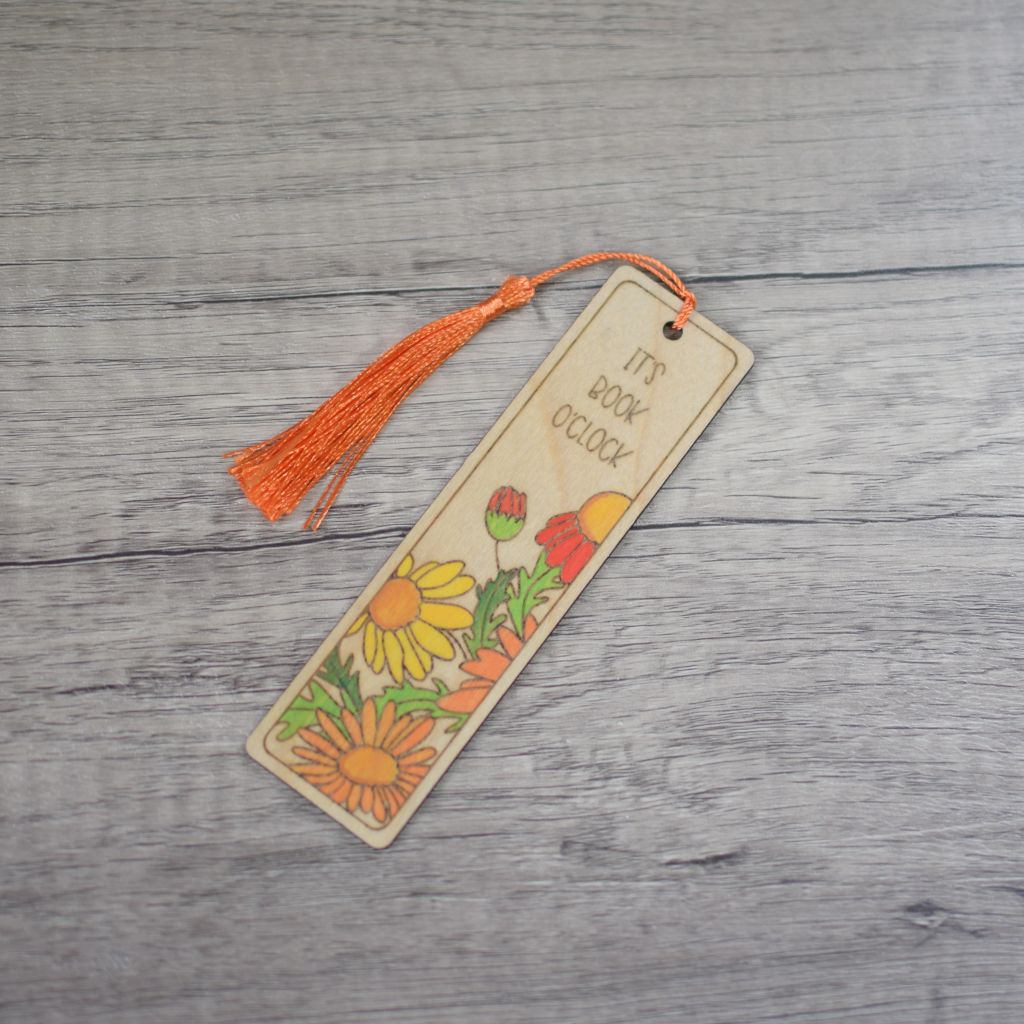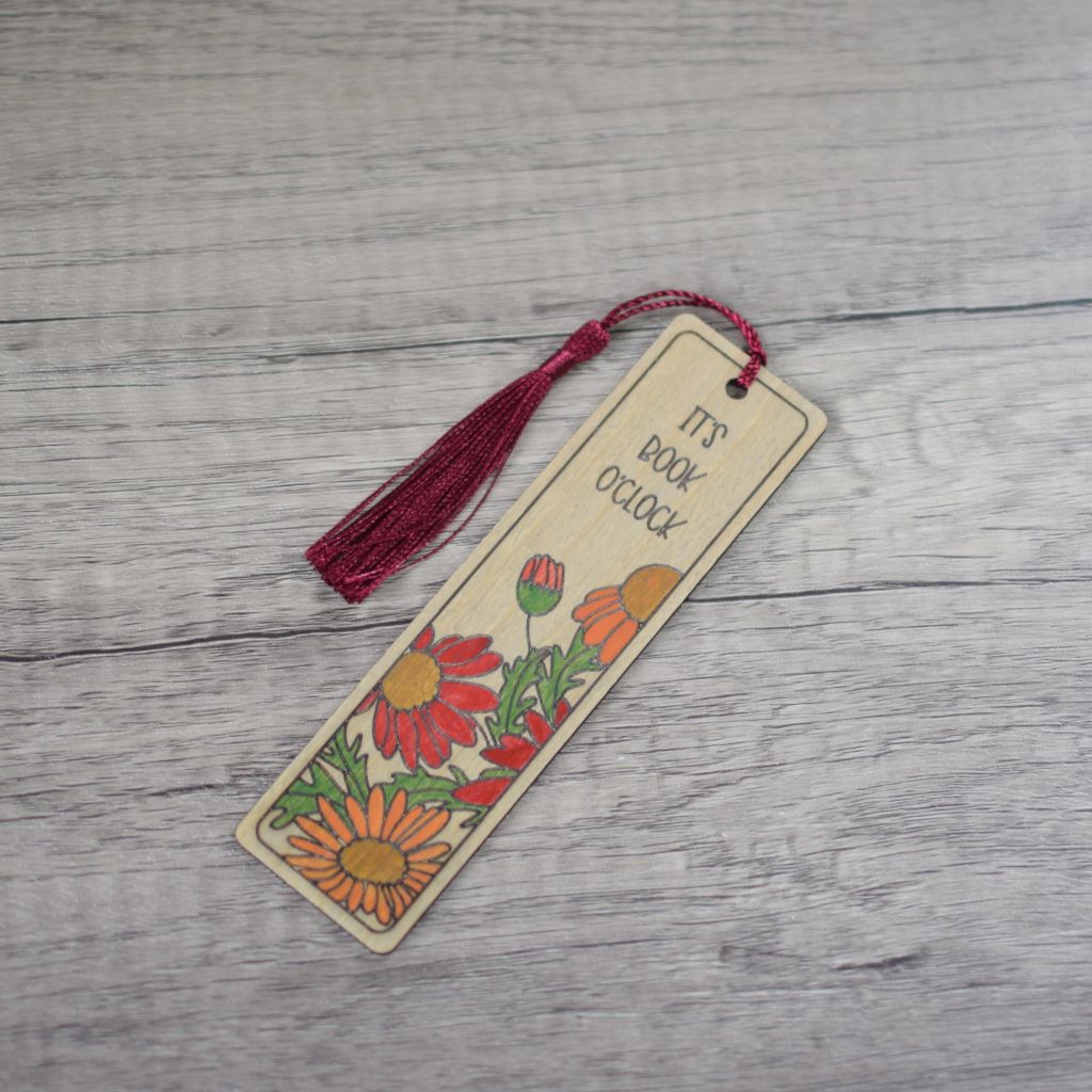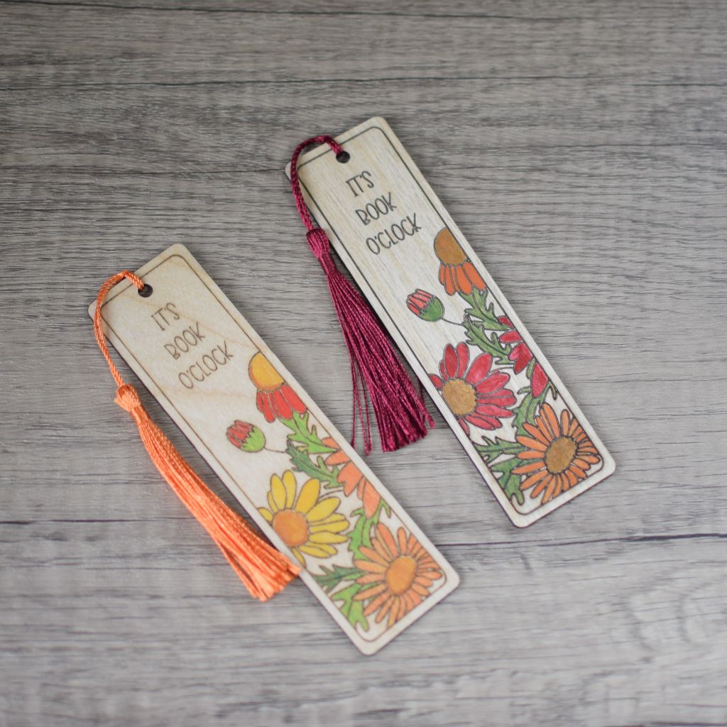 Fun laser engraved bookmarks with colourful daisies. A great gift for readers and book lovers, a laser engraved and hand painted wooden bookmark with a colourful silky type tassel. Measuring 14 x 3.8 cm, these are good size ad suitable of all readers. (not suitable for very young readers, but perfect for older readers and ideal for bed times stories and snuggles). Each bookmark is sanded and prepared by hand before laser engraving. We then hand paint each one to add colour and we finish with a clear lacquer to protect the book mark and help to keep it looking its best for longer. We choose the tassels to suit the design, if you would like a particular colour please let us know. Pop a note on your order at checkout or send an email and we will be able to change this for you. We also create personalised bookmarks, designed especially for you. Either hand burnt pyrography or laser engraved. Creating a unique and really special gift.