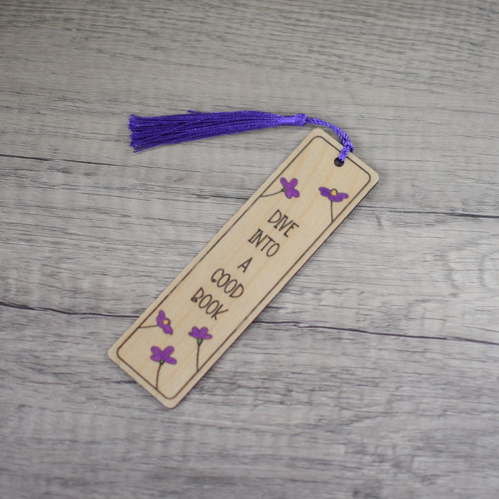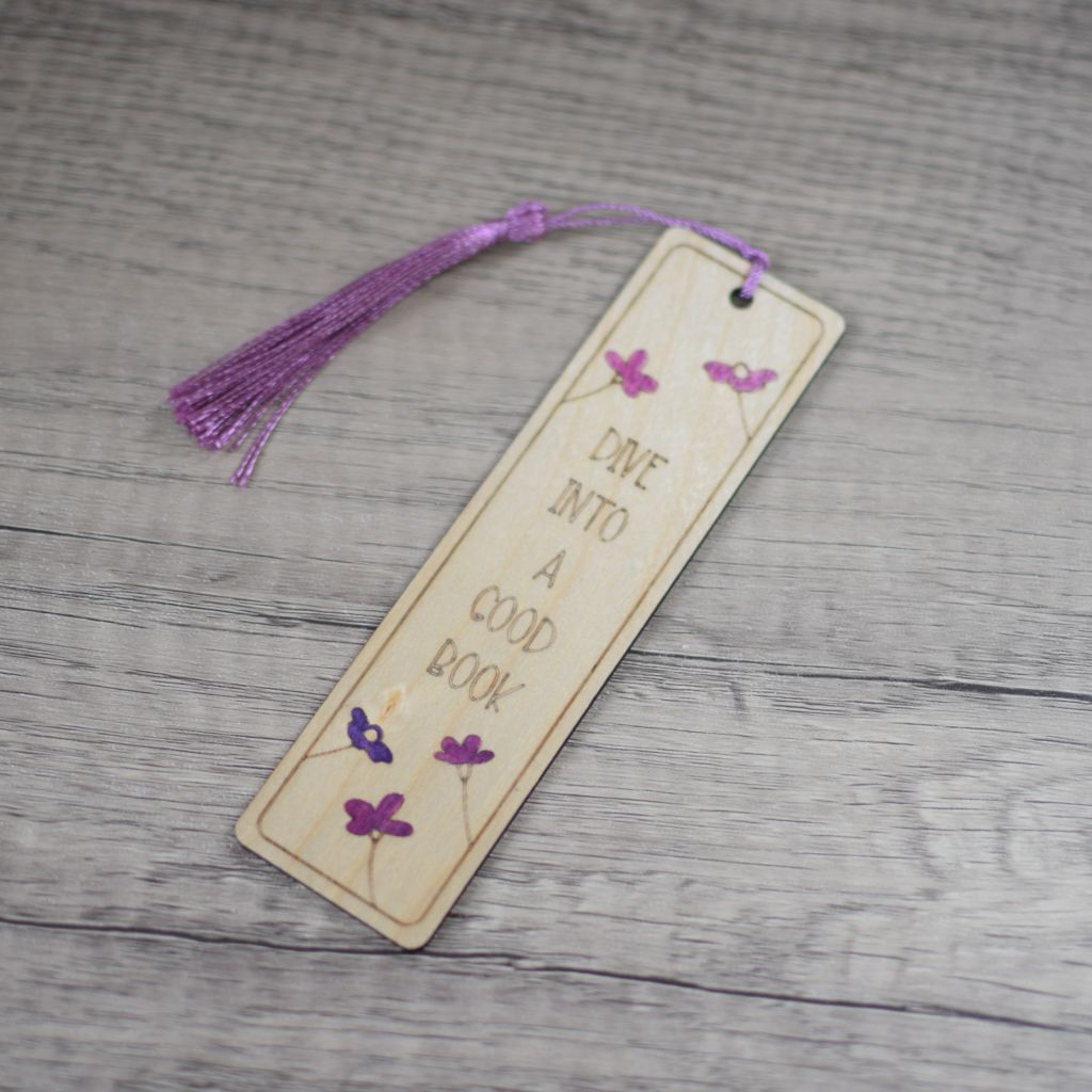 Each bookmark is sanded and prepared by hand before laser engraving. We then hand paint each one to add colour and we finish with a clear lacquer to protect the book mark and help to keep it looking its best for longer. We choose the tassels to suit the design, if you would like a particular colour please let us know. Pop a note on your order at checkout or send an email and we will be able to change this for you.