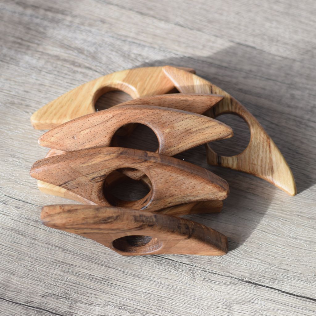 Eco-friendly I make these from any of the spare bits, left overs and scraps. Nothing goes to waste and is turned in to something useful. Cut on the bandsaw and shaped before a final hand sanding and the oil and wax finish.