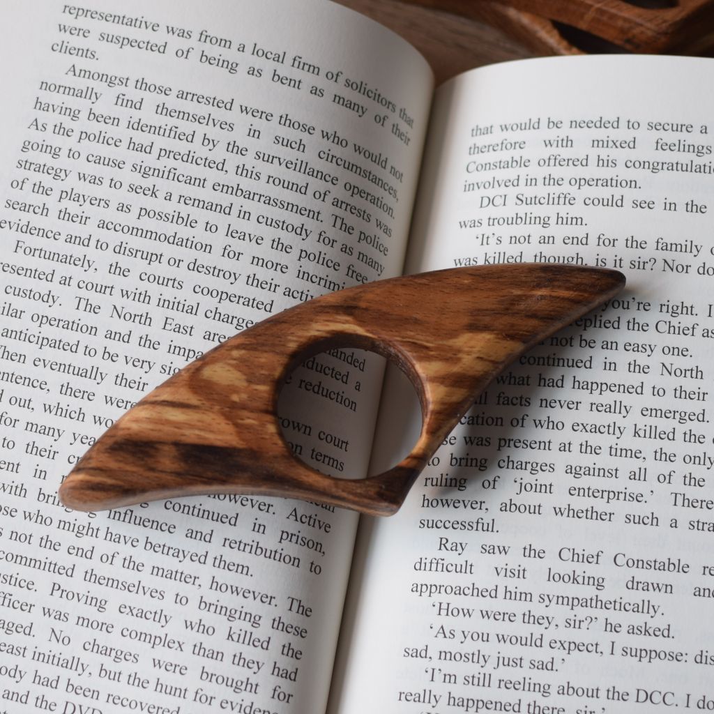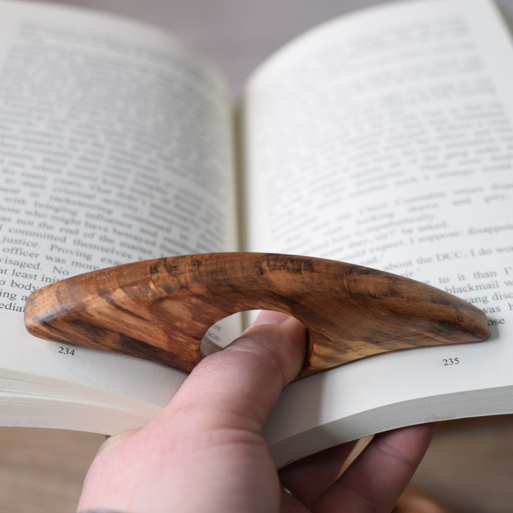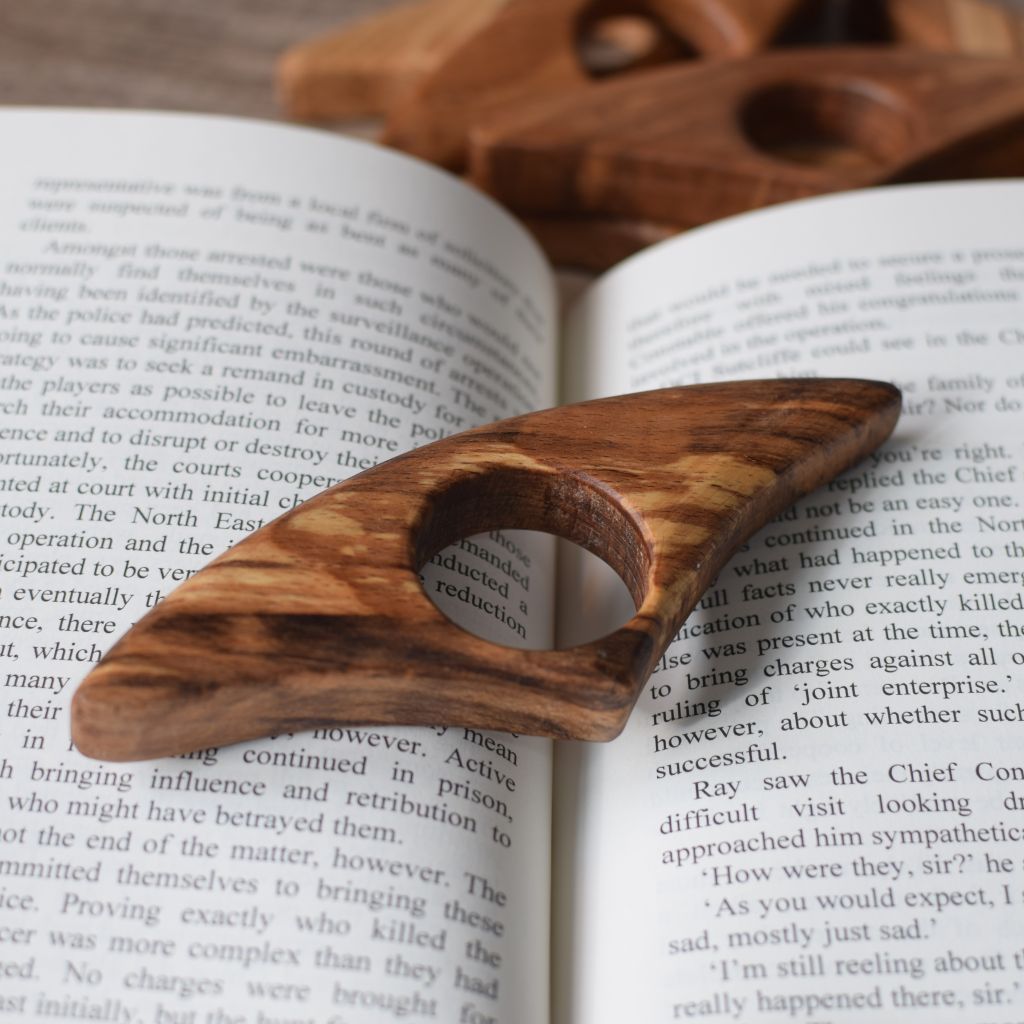 A range of wooden book page holders, used to keep the pages of your book open while reading. These are very handy for longer reading sessions and perfect for when you have a nice hot cuppa in one hand and your favourite read in the other. Or, for snuggly story times with the little ones.