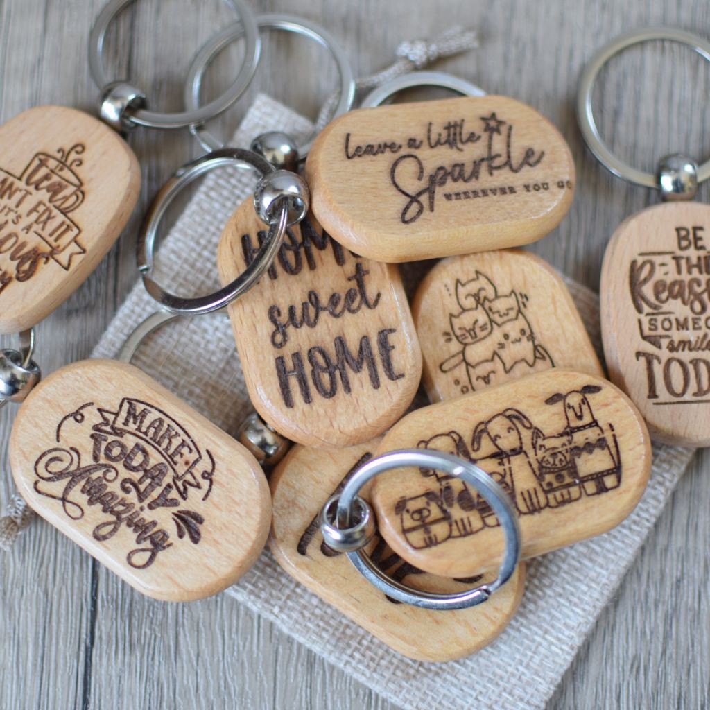 We also create personalised keyrings, designed especially for you. Either hand burnt pyrography or laser engraved. Creating a unique and really special gift.