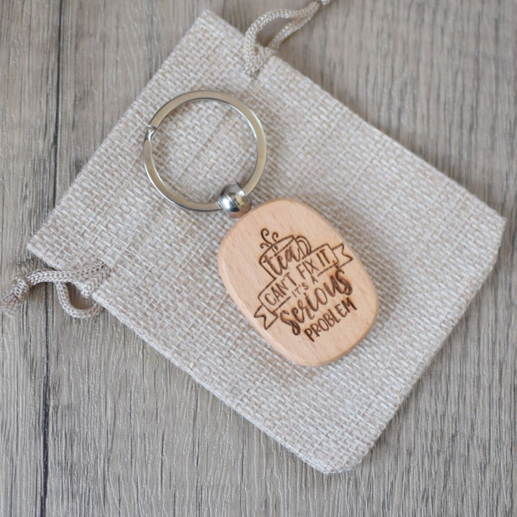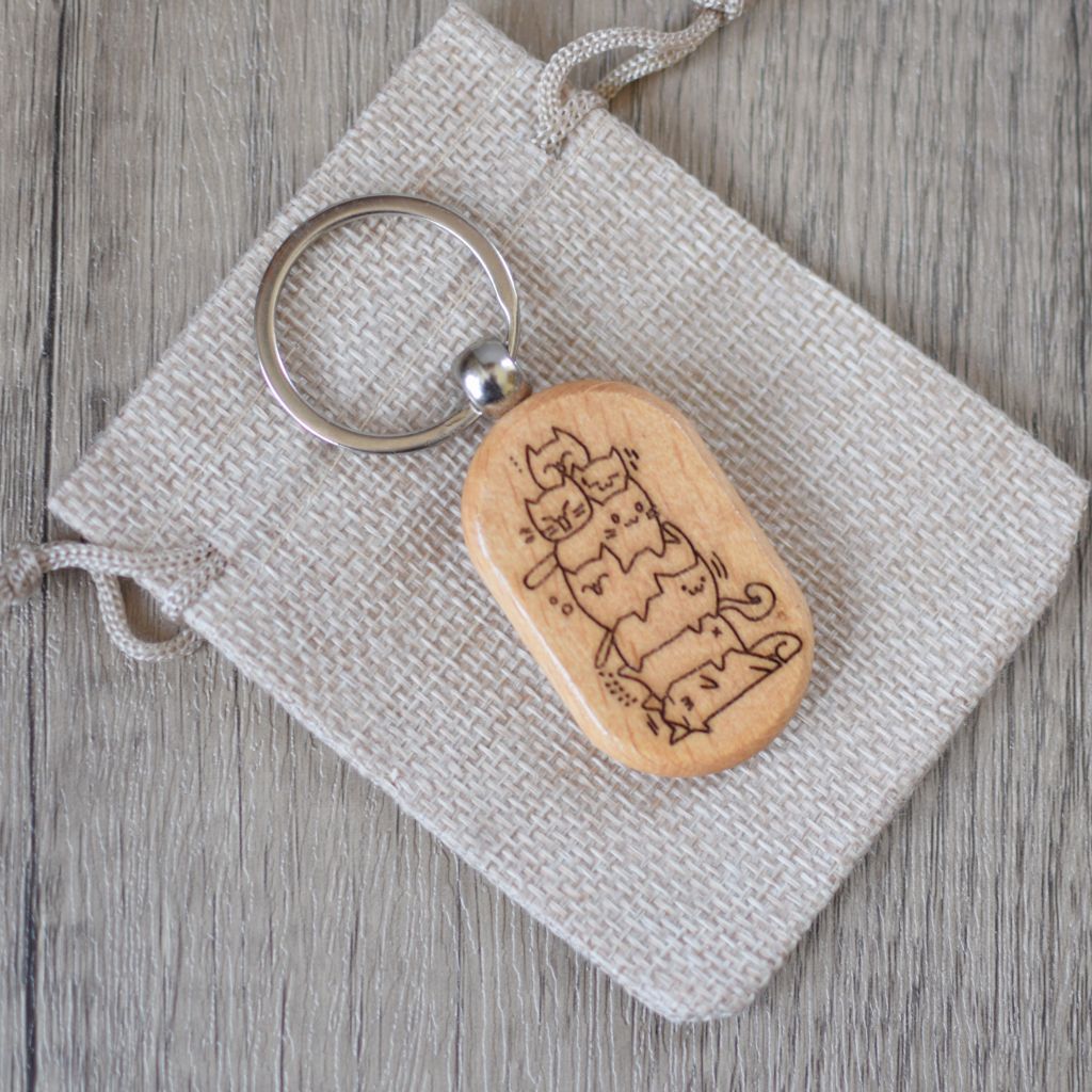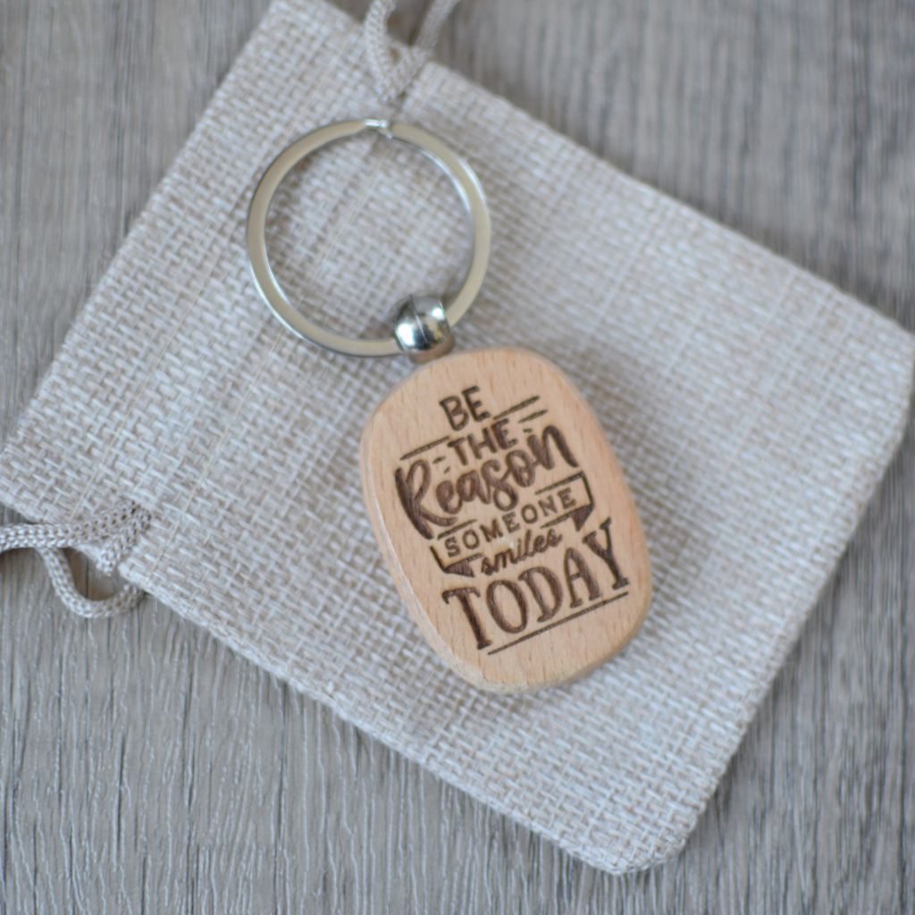 A laser engraved Beech wooden keyrings. A great gift for all occasions. The keyrings measure 4.5 x 3cm with assorted designs