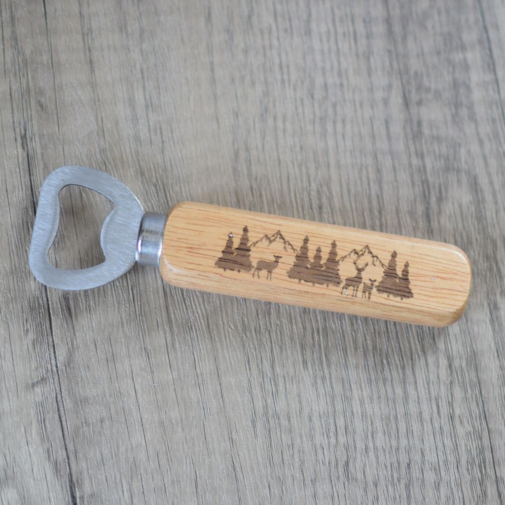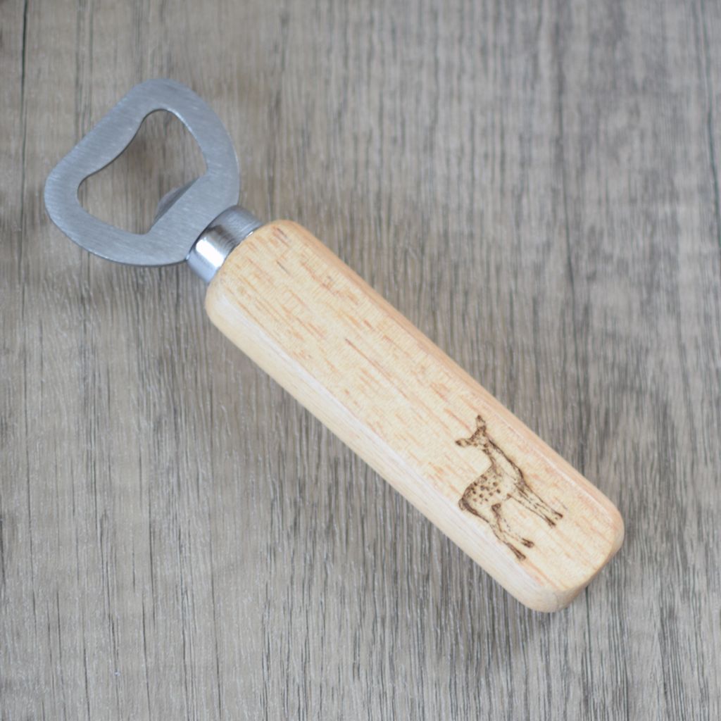 A range of fun laser engraved wooden handled bottle openers with a nature and animals theme. These can make the perfect gift for any occasion. And they’re not just for beer! Pop, soda, mixers, 0.0%’s… anything in a bottle really. Each bottle opener is laser engraved on both sides